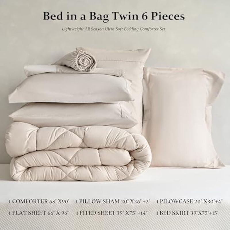 Newspin Cama King en una bolsa - Juego de edredón blanco de 7 piezas, juego de edredón ligero para - Pardo