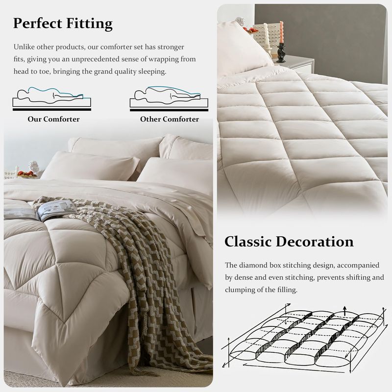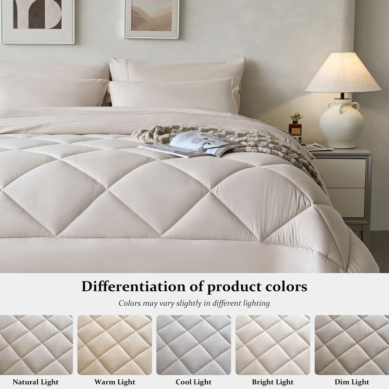 Newspin Cama King en una bolsa - Juego de edredón blanco de 7 piezas, juego de edredón ligero para - Pardo