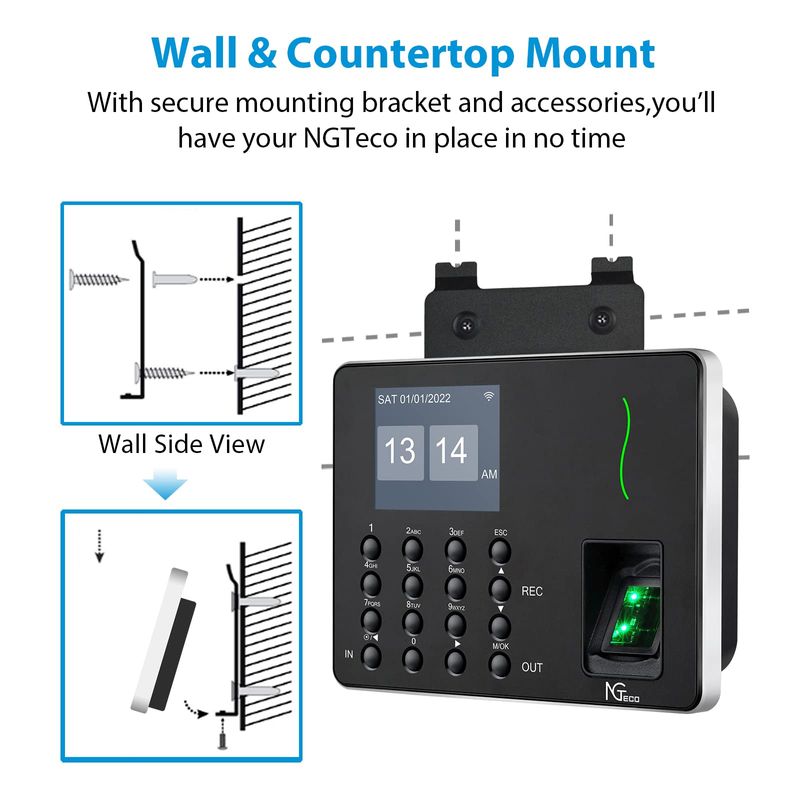 Perfecto para pequeñas empresas: el reloj de tiempo de huellas dactilares NGTeco que se utiliza ampliamente en lugares de trabajo como oficinas, fábricas, hoteles, escuelas, restaurantes, etc., es perfecto para pequeñas y medianas empresas con un máximo de 50 empleados.