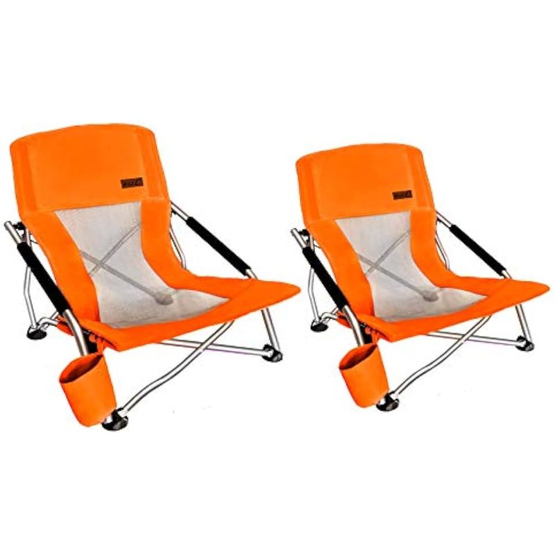 NICE C SILLA PLEGABLE DE CAMPING DE PLAYA BAJA, SILLA ULTRALIGERA CON SOPORTE PARA TAZAS Y BOLSA DE TRANSPORTE, COMPACTA Y RESISTENTE AL AIRE LIBRE, CAMPING, BARBACOA, PLAYA, VIAJES, PICNIC, FESTIVAL (2 PAQUETE COLOR NARANJA)