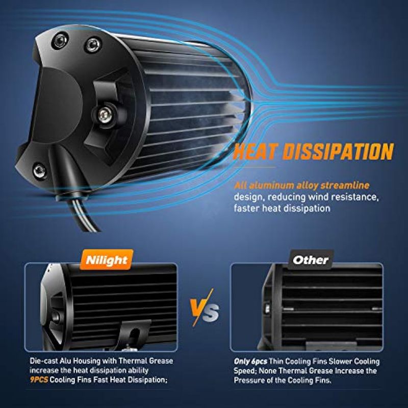 Nilight 18022C-B 2 barras de luces de triple fila de 6.5 pulgadas, 120 W, haz puntual y de