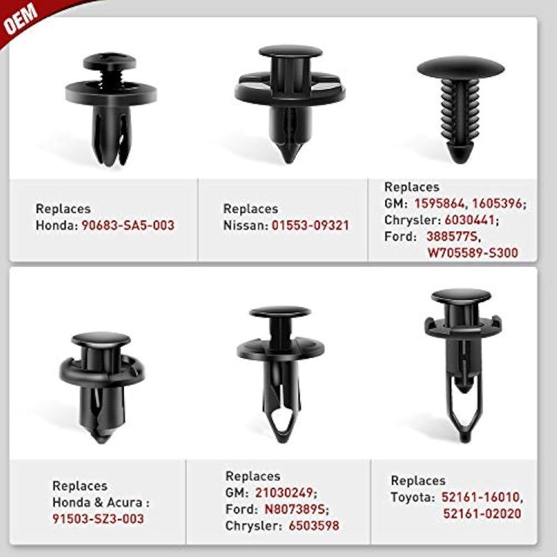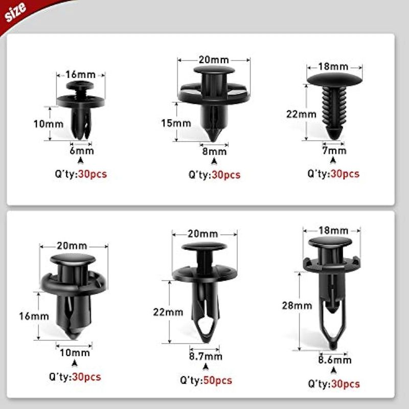 RODADOSHERRAMIENTAS PARA AUTONilight Juego de 200 clips de retención de automóvil de 0.236 in, 0.276 in, 0.315 in, 0.354 in,