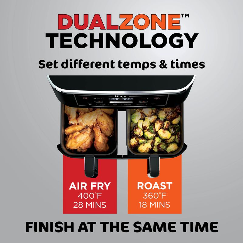 Ninja DZ401 Foodi - Freidora de aire 6 en 1 DualZone XL de 10 cuartos de galón con 2 cestas de freír