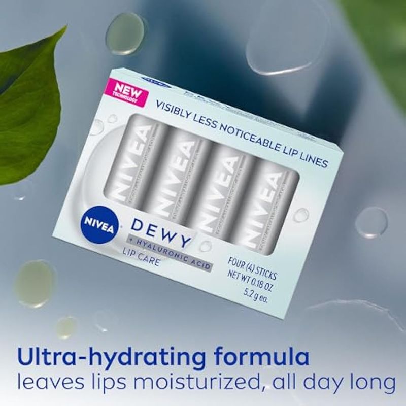 NIVEA Dewy Lip Care con ácido hialurónico, el bálsamo labial deja líneas de labios visiblemente