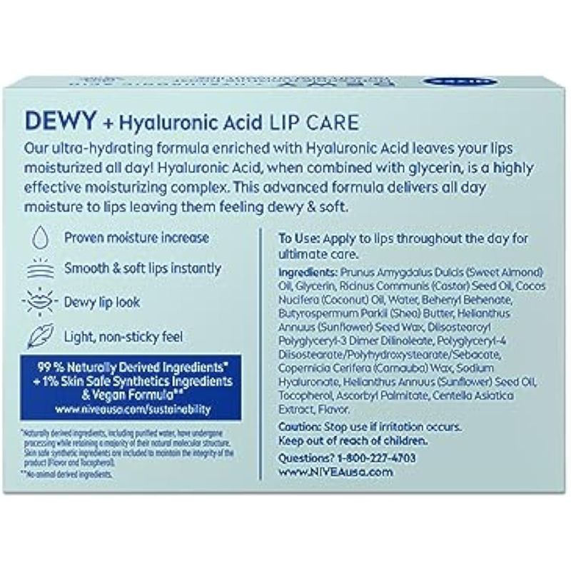 BELLEZA Y SALUDBELLEZA Y CUIDADO CORPORALCUIDADO DE LA PIELNIVEA Dewy Lip Care con ácido hialurónico, el bálsamo labial deja líneas de labios visiblemente