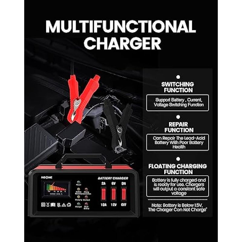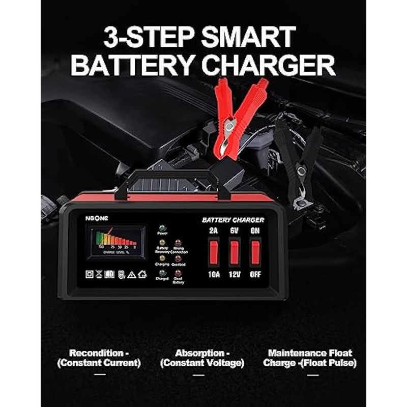 NOONE CARGADOR DE BATERíA DE COCHE 2A/10A, CARGADOR DE BATERíA DE 6V/12V AUTOMOTRIZ, CARGADOR DE GOTEO DE MOTOCICLETA, CARGADOR DE FLOTADOR DESULFATADOR Y PARA BATERíAS AGM, EFB, STD, PLOMO áCIDO
