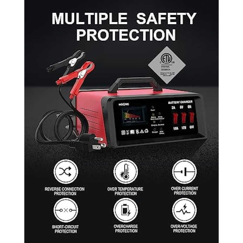 Protección de seguridad múltiple y certificación ETL: este cargador de batería ofrece protección múltiple contra chispas, polaridad inversa, sobrecargadescarga, sobrevoltaje, sobrecorriente, sobrecarga, sobrecalentamiento, reflujo de corriente, cortocircuito. Los sistemas de refrigeración confiables mejoran el rendimiento de La certificación ETL hace que sea seguro de usar.