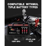 Compatibilidad universal: el mantenedor de batería Noone puede probar, cargar y reparar todas las baterías de plomo-ácido, AGM, gel o EFB de 612 voltios. El cargador de batería automotriz es perfecto para las baterías de automóviles, motocicletas, cortadoras de césped, cuatrimotos, tractores de césped, SUV, barcos, etc.