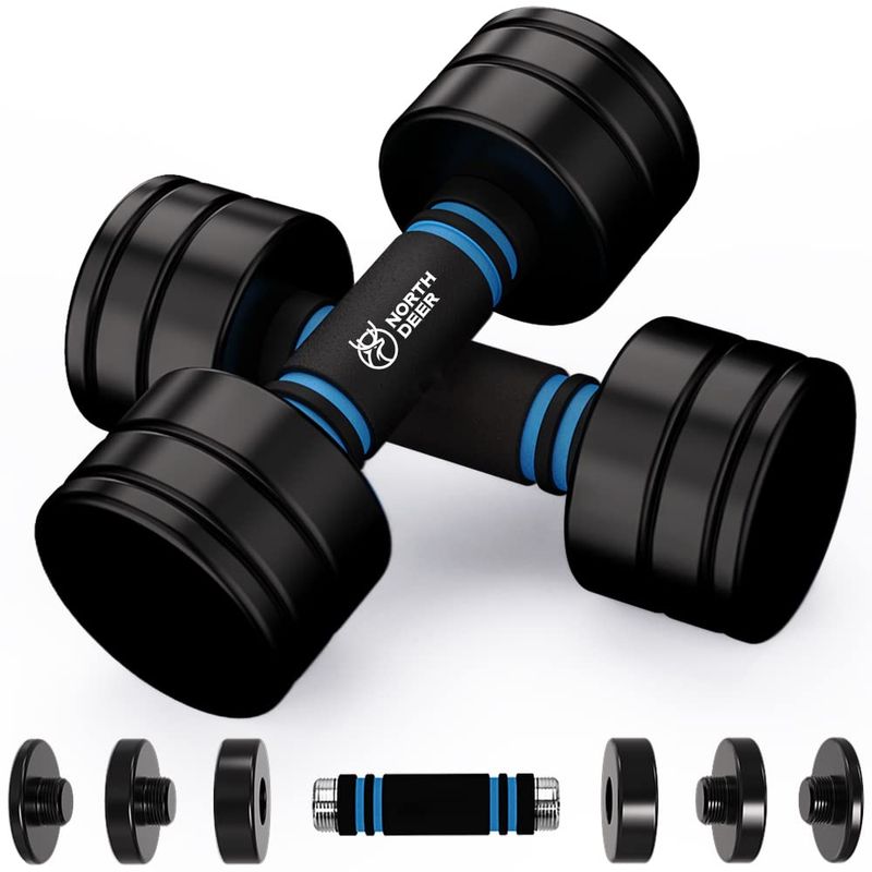 BELLEZA Y SALUDFITNESSACCESORIOS DEPORTIVOSNorthdeer Juego de mancuernas de acero ajustables con revestimiento negro con asas de espuma para