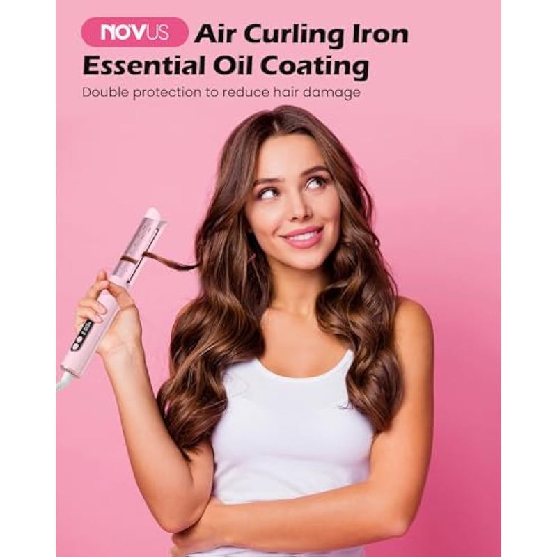 NOVUS - Plancha rizadora de flujo de aire para rizos duraderos, plancha plana de cerámica 2 en 1,