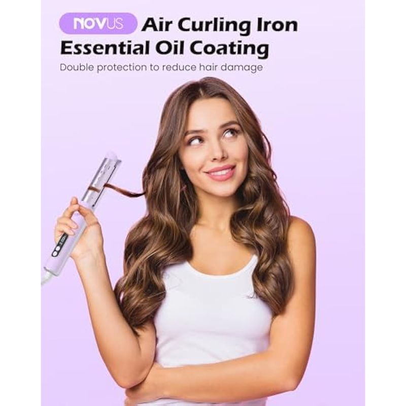 NOVUS - Plancha rizadora de flujo de aire para rizos duraderos, plancha plana de cerámica 2 en 1,