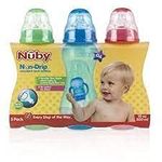 Nuby Botellas de cuello estándar antigoteo, 10 onzas, los colores pueden variar, 3 unidades (paquete