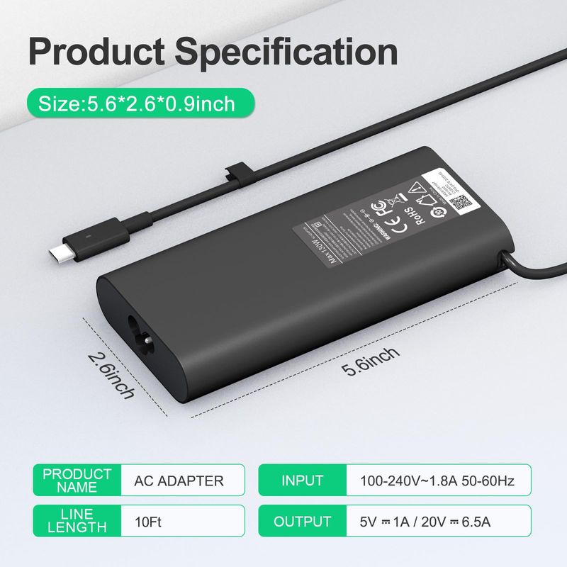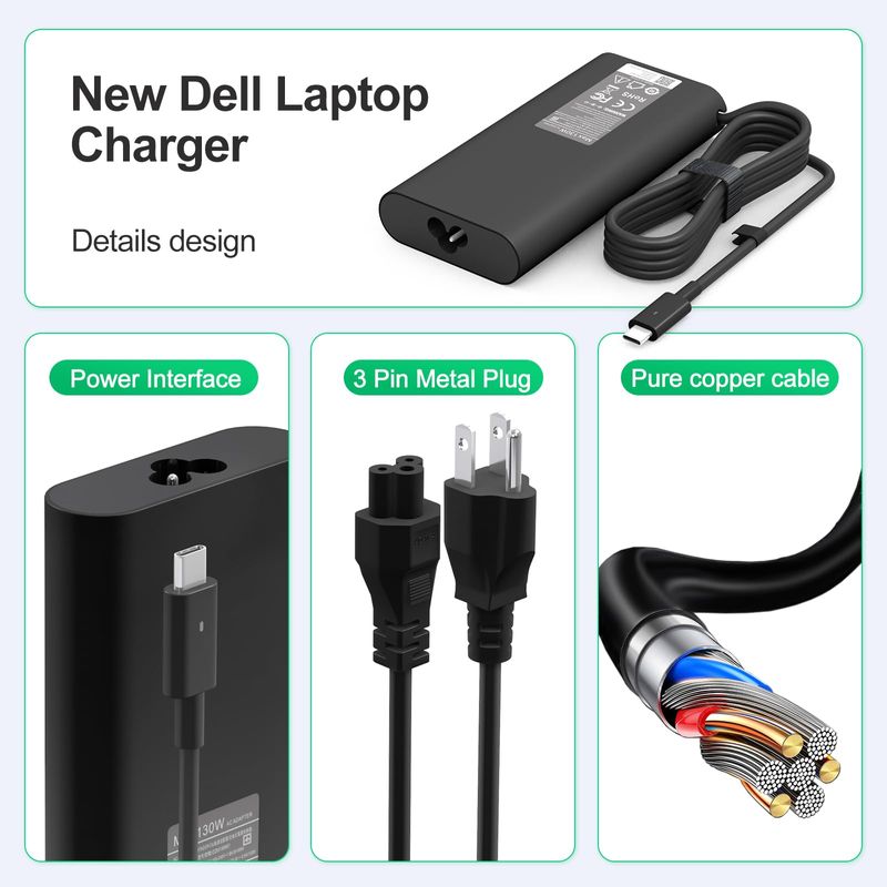 Nuevo reemplazo Dell 130 W portátil cargador USB C tipo C para Dell XPS 15 9575 9520 9510 9500 17