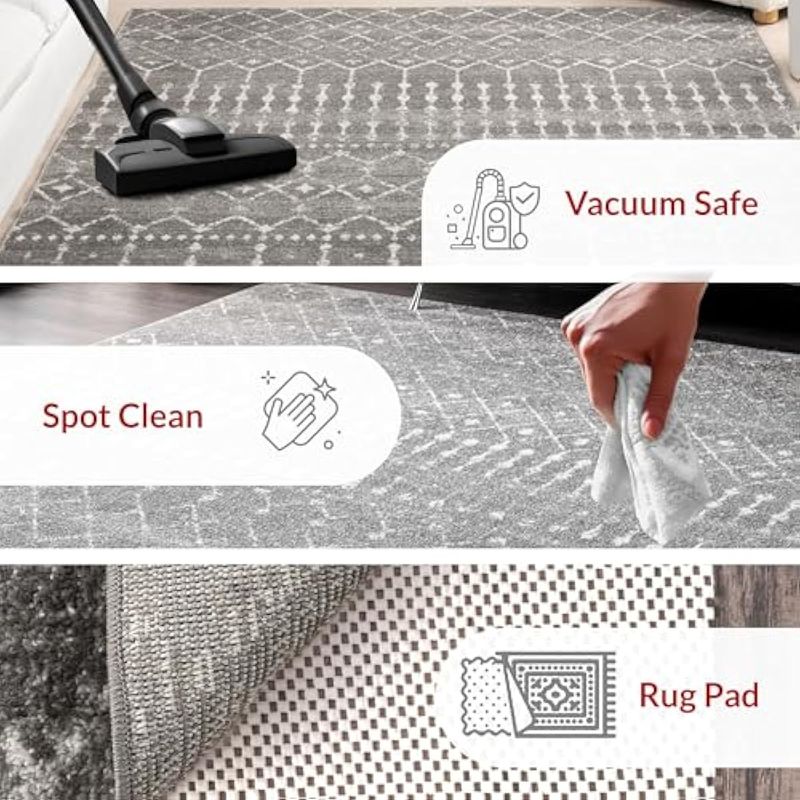 Fácil de limpiar y mantener, esta alfombra se puede mantener con el mejor aspecto aspirando regularmente y tratando cualquier mancha leve con detergente suave o limpiador de alfombras.