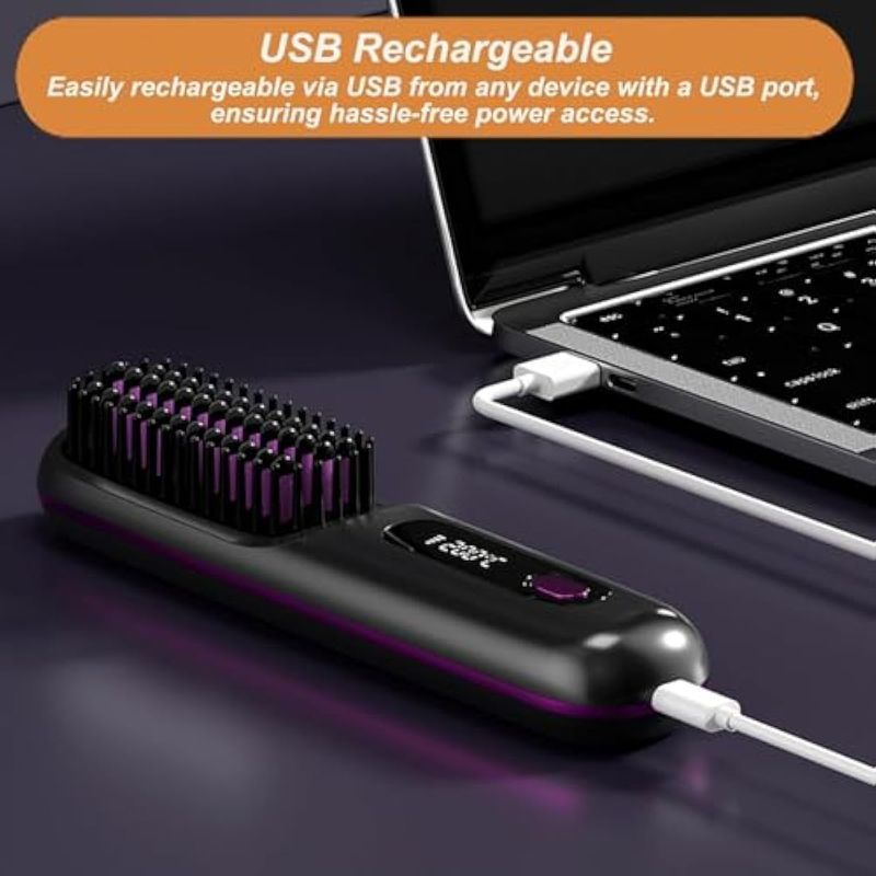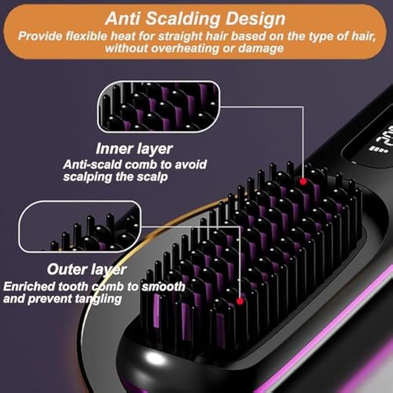 Numoya Go Brush Pro, cepillo alisador de pelo portátil, pantalla LCD, ligero, inalámbrico (negro)