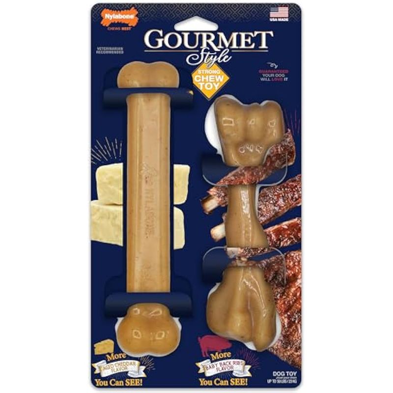 Nylabone Gourmet Style Strong Chew Classic & Fémur Bone - Juguete masticable para perros,