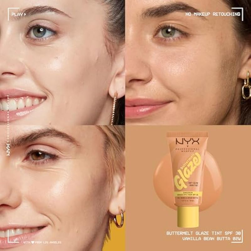 NYX PROFESSIONAL MAKEUP BUTTERMELT GLAZE SOFT GLOW SKIN TINT + SPF 30, HASTA 12 HORAS DE USO, 02 VANILLA BEAN BUTTA