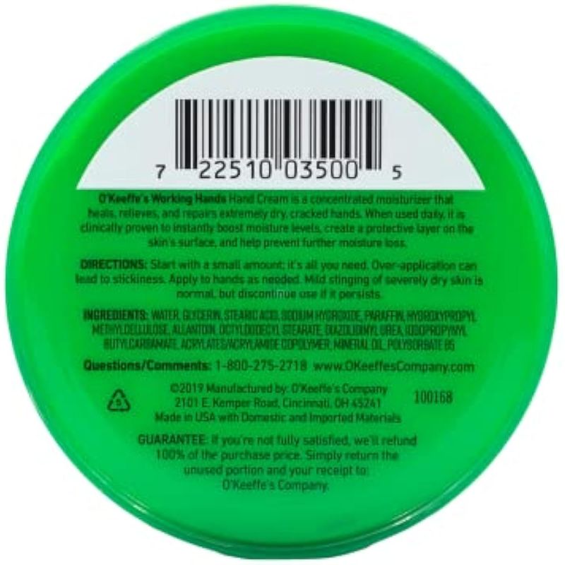 La crema de manos trabajadoras de OKeeffes es una crema de manos concentrada y sin perfume que cura, alivia y repara las manos extremadamente secas y agrietadas. Cuando se usa a diario, la crema de manos trabajadoras de OKeeffes está clínicamente probada para aumentar instantáneamente los niveles de humedad, ayudar a prevenir una mayor pérdida de humedad, crear una barrera protectora en la superficie de la piel y marcar la diferencia que sentirás en cuestión de días. OKeeffes ofrece una versión de tubo de nuestra crema hidratante para manos. Ya sea que prefieras un tubo o un frasco, la crema de manos trabajadoras de OKeeffes viene en ambas formas para proporcionar alivio. Haz clic en el enlace O'Keeffe's en la parte superior de esta página para comprar en la tienda de la marca O'Keeffe's