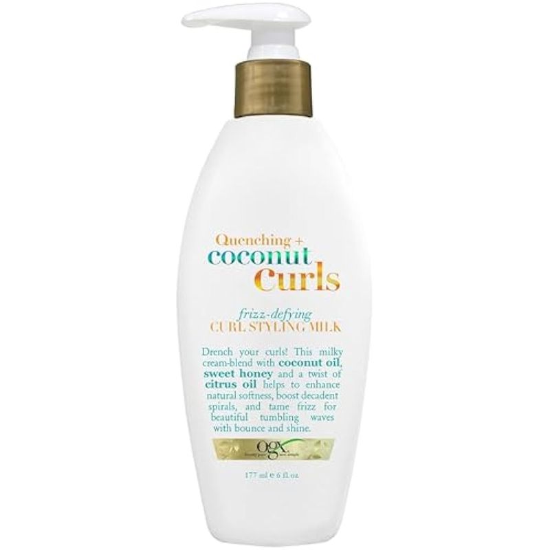 Mejora tus rizos: esta botella de 6 onzas líquidas de OGX Quenching + Coconut Curls Frizz-Defying Curl Styling Milk ayuda a desenredar, definir y suavizar los rizos para olas llenas de rebote y brillo