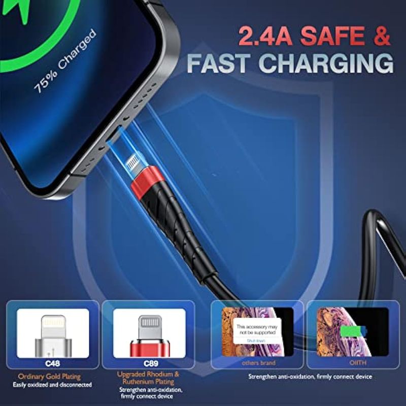 Conector C89 mejorado: conector certificado por Apple C89 chapado en rodio y rutenio, fortalece la antioxidación, conecta firmemente los dispositivos. No suelta y no es mordida por mascotas.