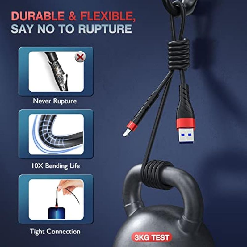 Carga rápida y sincronización de datos 2 en 1: carga rápida de 2.4 amperios MAX y transmisión de datos de 480 mpbss, mientras que evita el sobrecalentamiento y la sobrecarga. Carga goteo y protege la batería del dispositivo.
