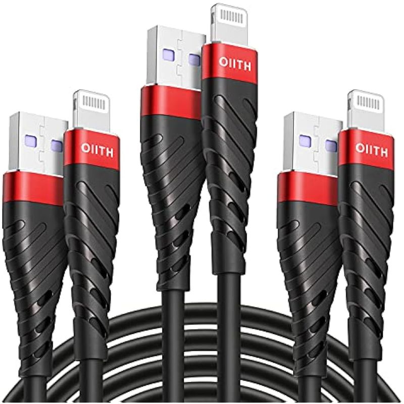 Cable Lightning con certificación MFi de Apple: paquete de 3 cables OIITH de 10 pies para Apple adopta el chip certificado oficialmente de Apple para garantizar una carga más rápida y segura. Sin ruptura, baja pérdida.