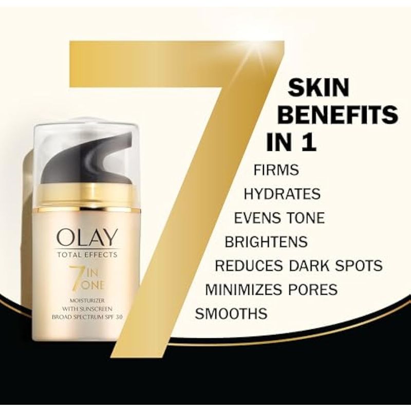 Olay Loción hidratante facial SPF 30 Efectos totales para piel seca, 7 beneficios incluyendo