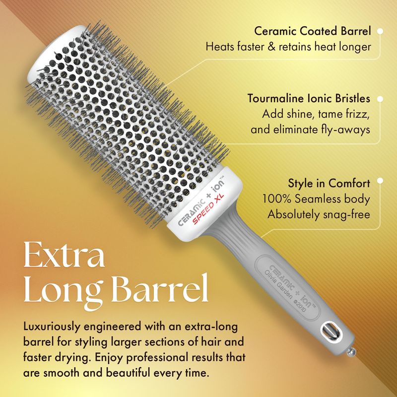 Olivia Garden Ceramic + Ion Speed XL - Extra-Long Round Thermal Hair Brush - Not Electrical -