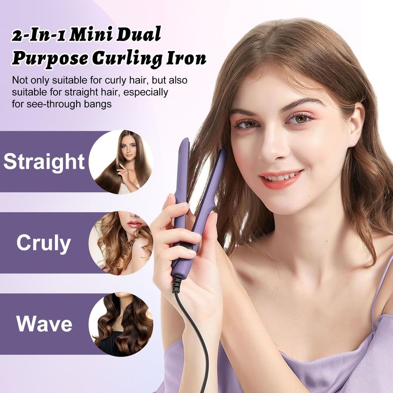 Omaky Mini rizador de pelo 2 en 1 mejorado, mini plancha plana de doble propósito, rizador portátil