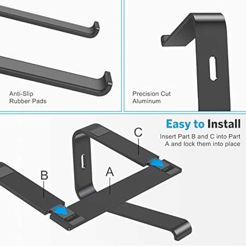 Desmontable y portátil: el soporte para portátil es compacto, ligero y fácil de instalar o desmontar. Puedes desmontarlo y llevarlo contigo en el camino a la biblioteca.