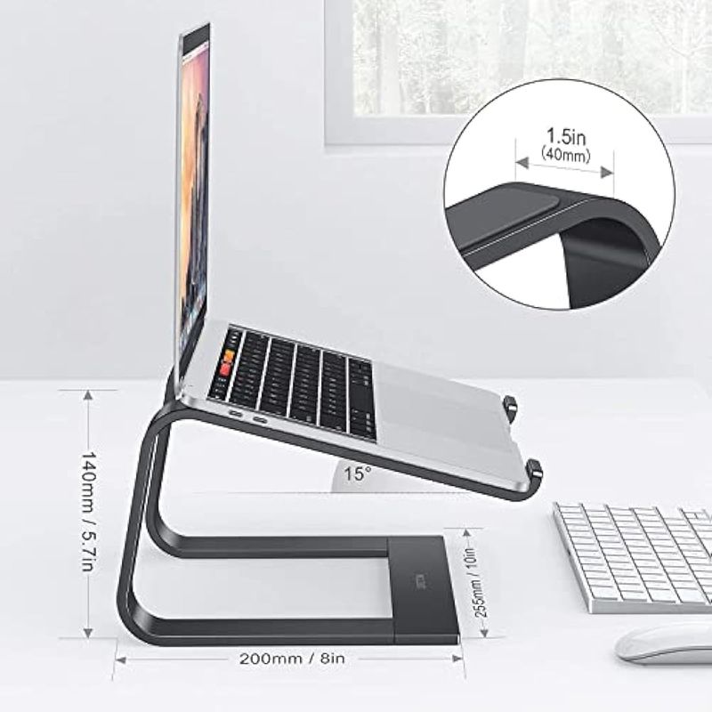 Disipación del calor: este elevador para portátil permite un flujo de aire libre debajo, lo que ayuda a disipar el calor de tu portátil. Además, el cuerpo de aleación de aluminio ayuda a absorber y difundir el calor.