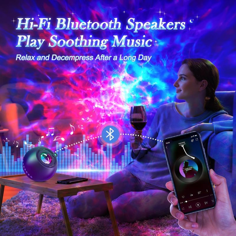 One Fire Proyector de galaxia para dormitorio, luz de galaxia de ruido blanco, temporizador remoto,