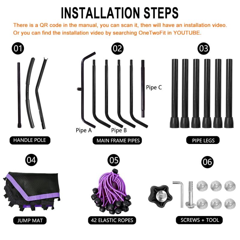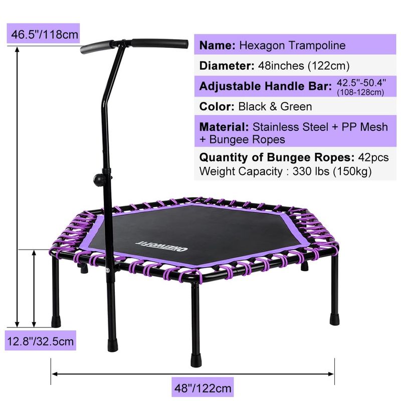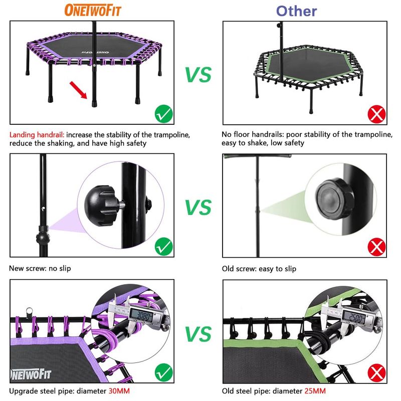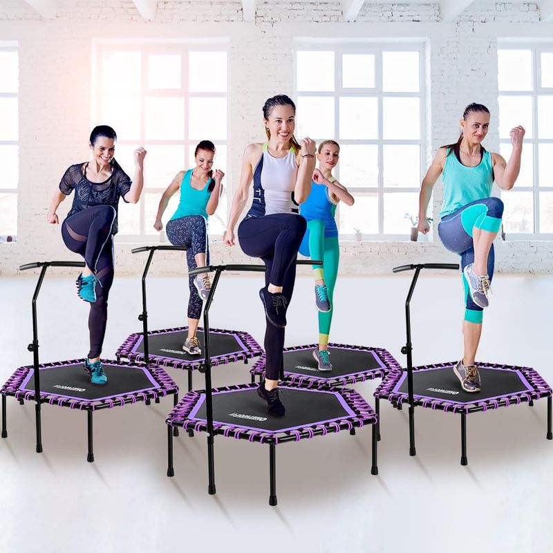 ONETWOFIT 48" Silent Mini Trampoline with Adjustable Handle Bar Fitness Trampoline Bungee