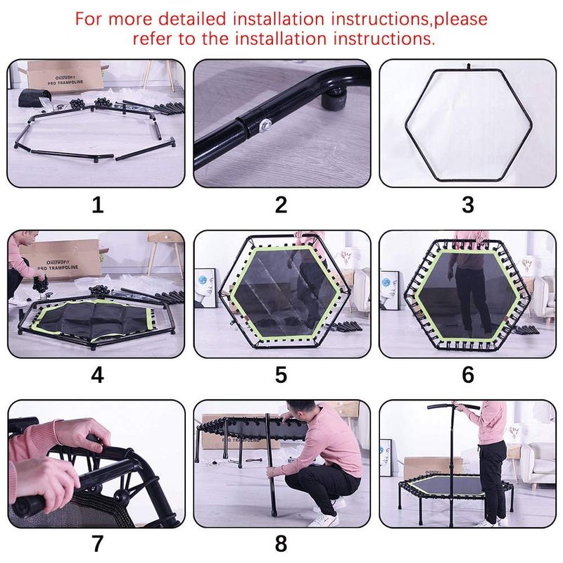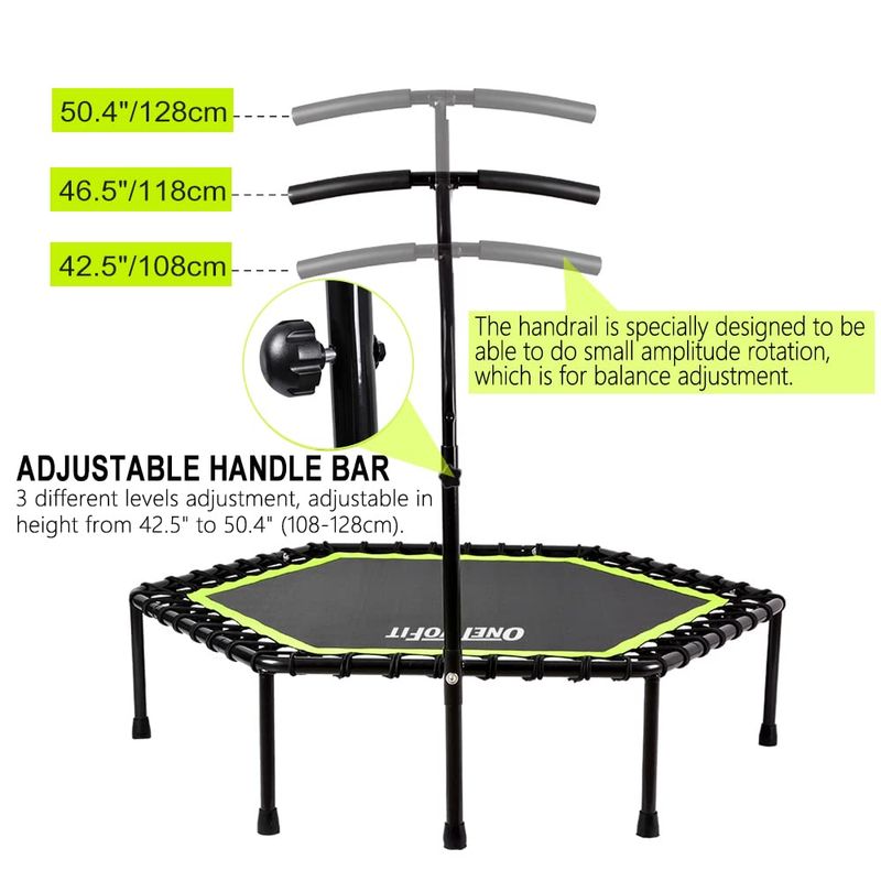 ONETWOFIT 48" Silent Mini Trampoline with Adjustable Handle Bar Fitness Trampoline Bungee