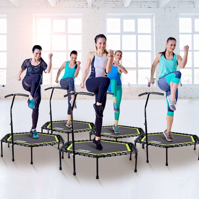 BELLEZA Y SALUDFITNESSACCESORIOS DEPORTIVOSONETWOFIT 48" Silent Mini Trampoline with Adjustable Handle Bar Fitness Trampoline Bungee