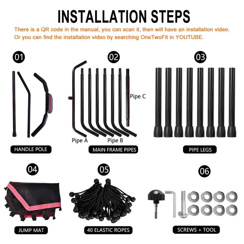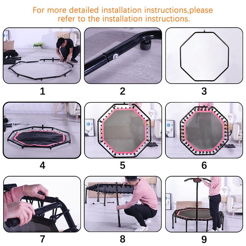 BELLEZA Y SALUDFITNESSACCESORIOS DEPORTIVOSONETWOFIT Trampolín silencioso de 51 pulgadas con barra de mango ajustable, trampolín de fitness,