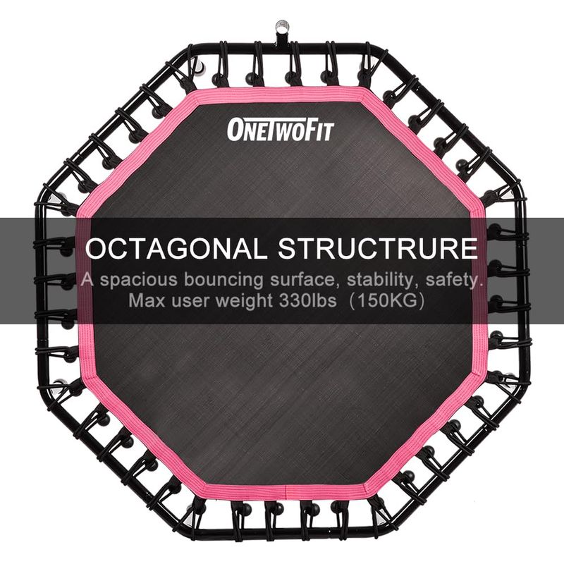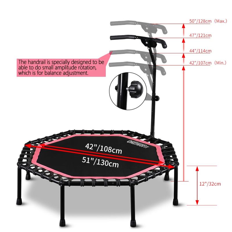 ONETWOFIT Trampolín silencioso de 51 pulgadas con barra de mango ajustable, trampolín de fitness,