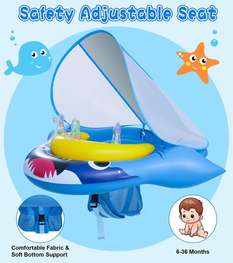 JARDÍNPILETASINFLABLESOnory Flotador de piscina para bebés con toldo, flotadores de piscina para bebés de 6 a 36 meses,