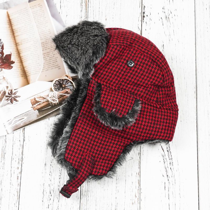 HOGARINDUMENTARIA Y ACCESORIOSONWAY Sombrero de trampero de piel de aviador a cuadros de búfalo Ushanka esquimal ruso con orejeras