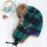 ONWAY Sombrero de trampero de piel de aviador a cuadros de búfalo Ushanka esquimal ruso con orejeras