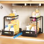 HOGARBAZARUTENSILIOS DE COCINAOrganizador para debajo del fregadero, 2 unidades, estante organizador de gabinete extraíble,