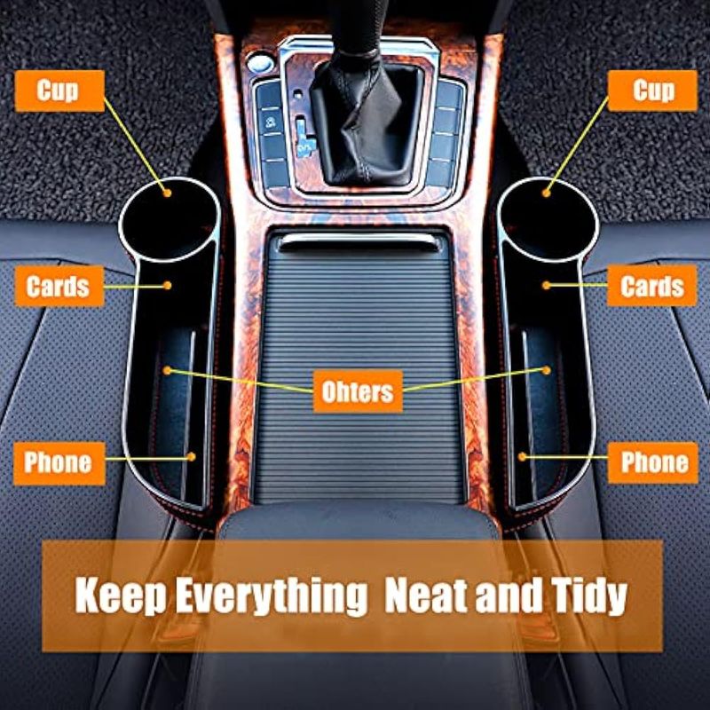?Excelente diseño?El organizador para el espacio entre asientos de automóvil cuenta con compartimentos multifuncionales, que incluyen la posición del orificio de cable, y la caja presenta un diseño de orificio de carga fácil de usar.