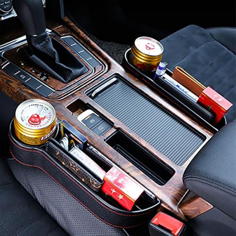 ORGANIZADOR PARA ESPACIO ENTRE ASIENTOS DE AUTOMóVIL, ENTRE EL ORGANIZADOR DE ASIENTO DELANTERO Y LA CAJA DE ALMACENAMIENTO, CONSOLA DE PIEL SINTéTICA DE ALTA CALIDAD CON PORTAVASOS, BOLSILLO PARA ELEMENTOS ESENCIALES INTERIORES (PARA EL LADO DEL PASAJERO)