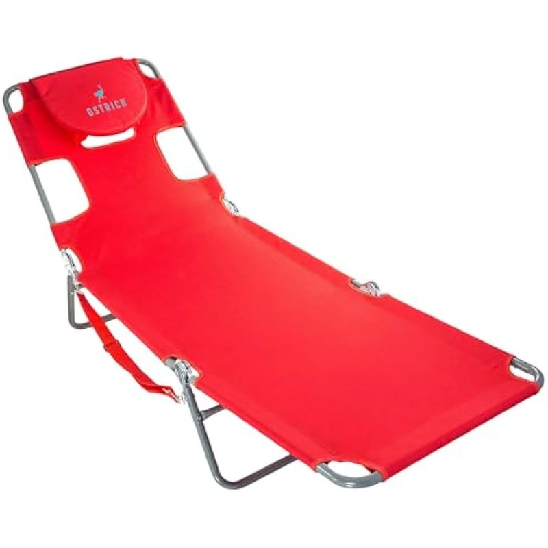 OSTRICH - SILLA TUMBONA DE PLAYA PARA ADULTOS CON ORIFICIO PARA LA CARA, VERSáTIL, PLEGABLE, PARA PISCINA EXTERIOR, TOMAR EL SOL Y LEER EN EL ESTóMAGO, DE LUJO, PARA BRONCEADO (ROJO)