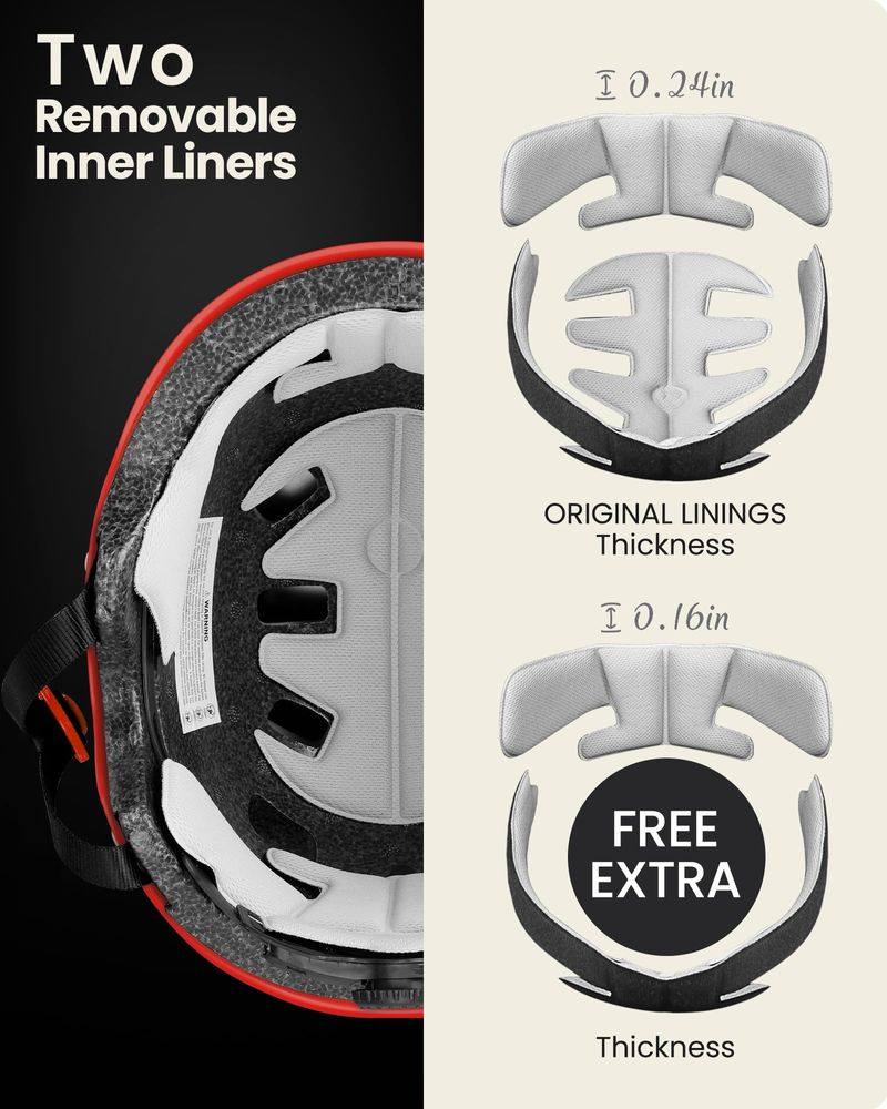 OutdoorMaster - Casco de patineta o bicicleta, con dos forros extraíbles y ventilación, para varios