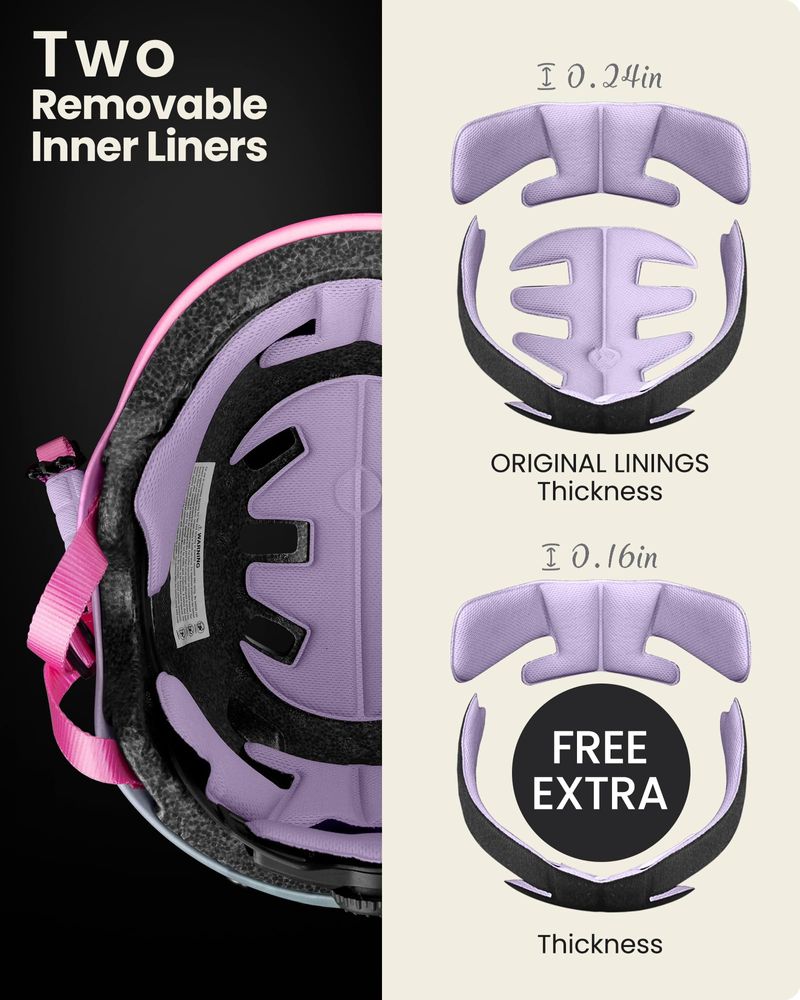 Forro extra extraíble: casco de patineta con dos forro extraíble para diferentes tamaños de cabeza y fácil de lavar el sudor.