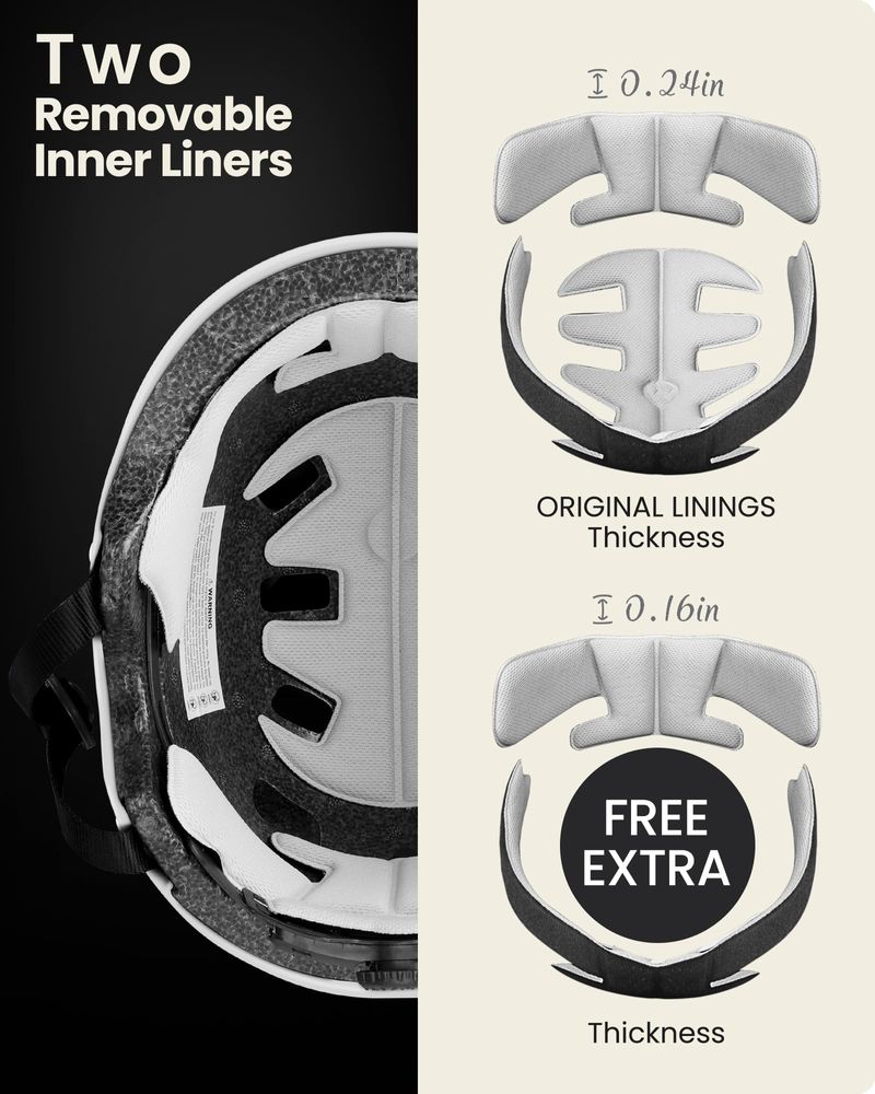 Forro extra extraíble: casco de patineta con dos forro extraíble para diferentes tamaños de cabeza y fácil de lavar el sudor.
