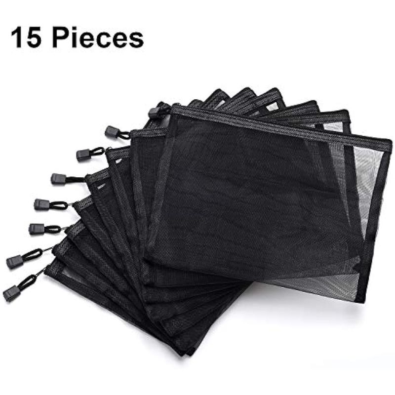 OUTUS 15 BOLSAS DE MALLA NEGRA CON CREMALLERA BOLSA DE MAQUILLAJE COSMéTICOS ORGANIZADOR DE VIAJE BOLSAS ESTUCHE DE LáPICES, NEGRO -