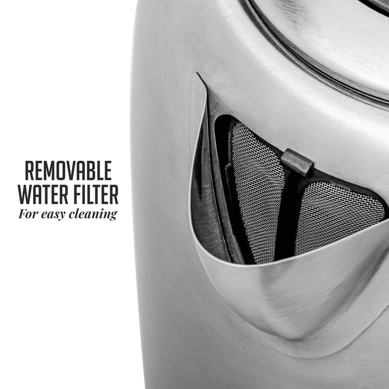 Ovente. Hervidor de agua eléctrico de 0.45 galones, inalámbrico, de acero inoxidable, libre de BPA,