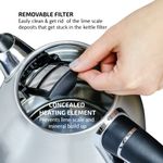 OVENTE HERVIDOR ELéCTRICO DE AGUA CALIENTE DE ACERO INOXIDABLE DE 1.7 LITROS, COLECCIóN VICTORIA, CALDERA DE 1500 VATIOS CON APAGADO AUTOMáTICO, PROTECCIóN EN SECO, FILTRO EXTRAíBLE Y MEDIDOR DE AGUA, COLOR NEGRO KS777B